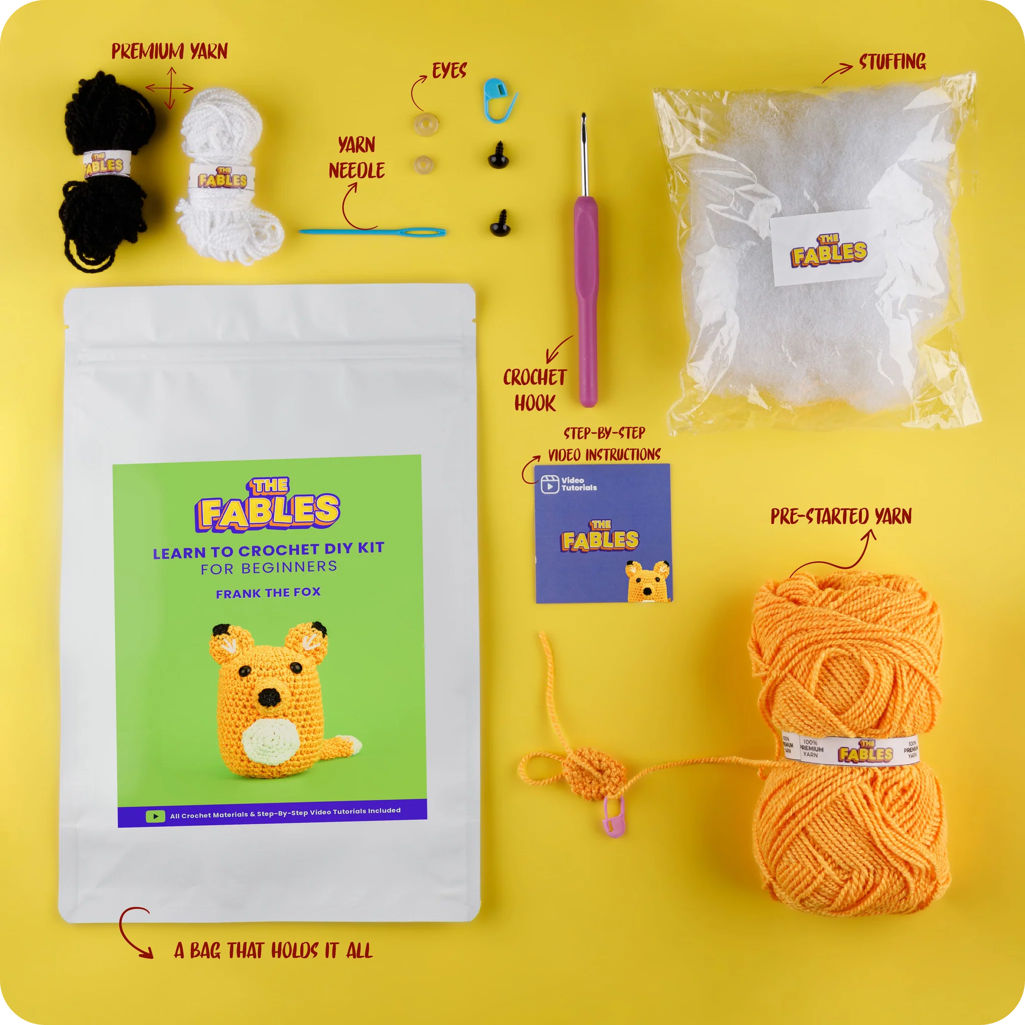 Our learn-to-crochet kit is designed keeping all the needs of a newbie crocheter in mind & hence right from pre-started yarn to video tutorials & other materials, we have curated it thoughtfully to provide a seamless experience.